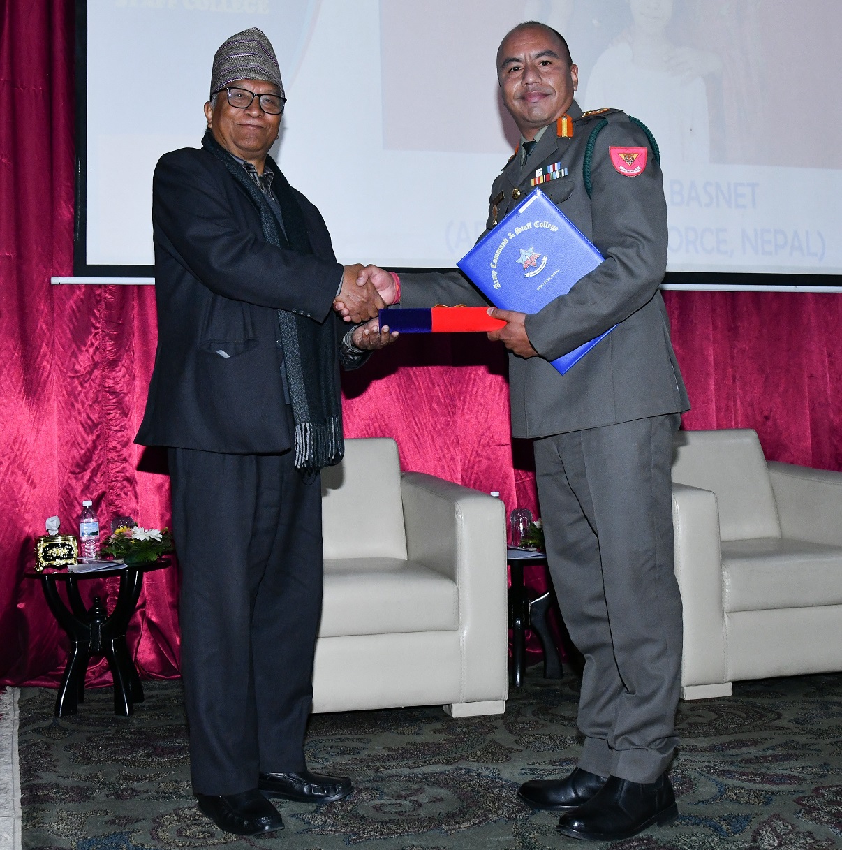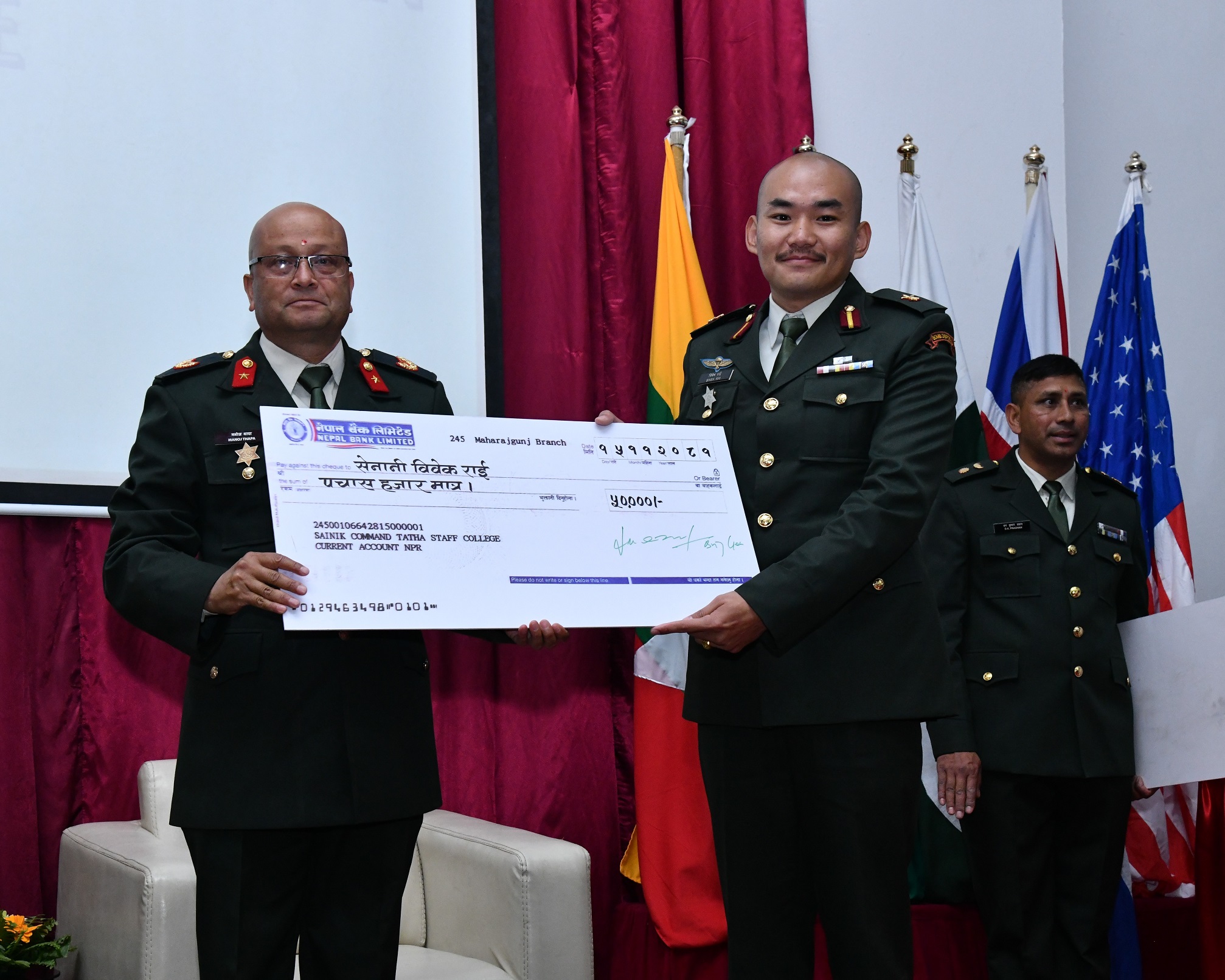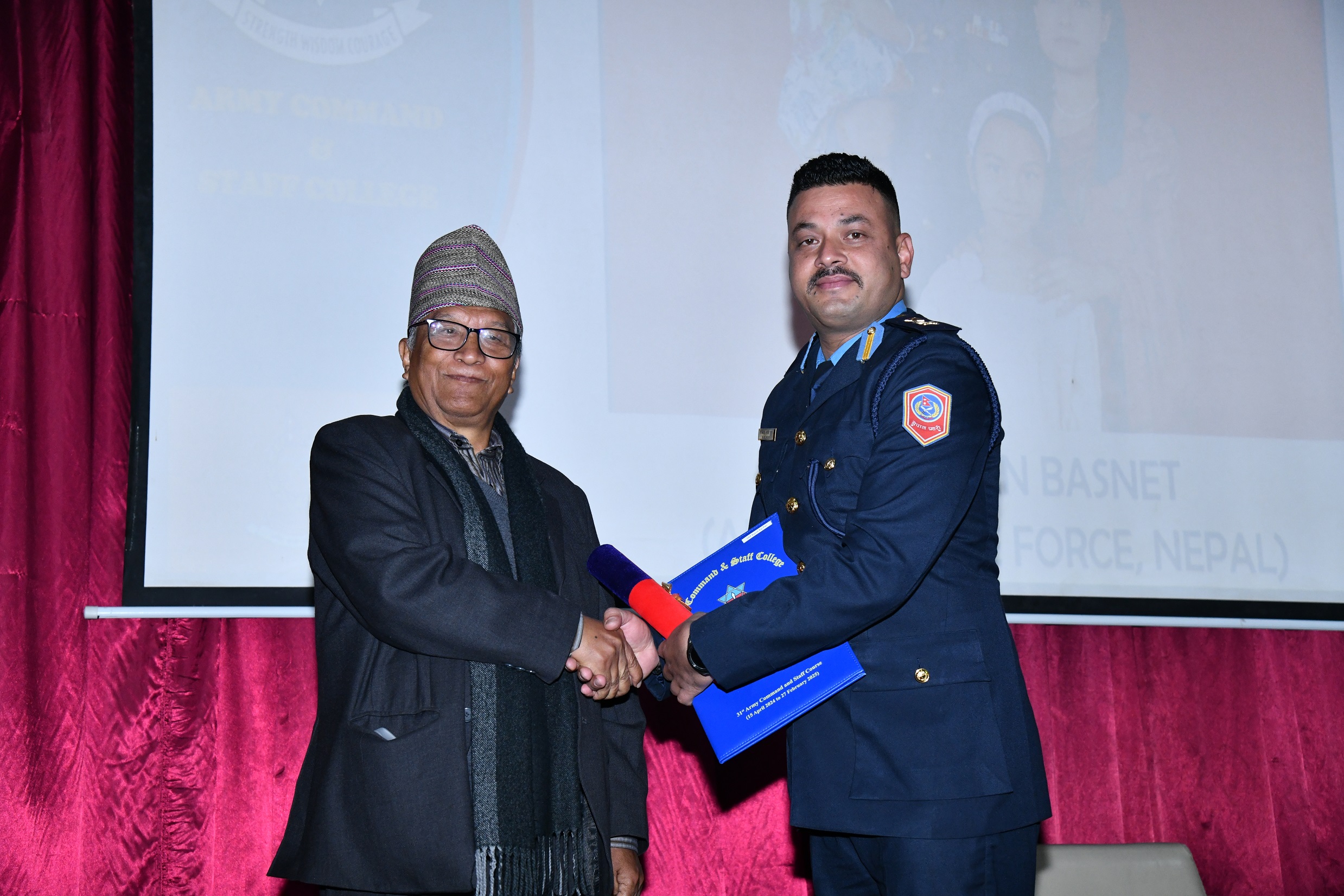बिहीबार आयोजित दीक्षान्त समारोहमा प्रधानसेनापति सिग्देलले तालिममा प्रथम हुने सेनानी साजन सिलवाललाई सर्वोत्कृष्ट शिक्षार्थी पुरस्कार र भारतीय सेनाका लेफ्टिनेन्ट कर्णेल अविजीत राँयलाई सर्वोत्कृष्ट अन्तर्राष्ट्रिय शिक्षार्थी अधिकृत पुरस्कार प्रदान गर्नुका साथै कलेजको वार्षिक प्रकाशन शिवपुरी जर्नलको २६औं संस्करण विमोचन गरे । कार्यक्रममा मास्टर्स इन स्ट्रेटिजिक स्टडी (एमएसएस) कार्यक्रमतर्फ प्रथम भएका सेनानी साजन सिलवाललाई त्रिभुवन विश्वविद्यालयका उपकुलपति केशरजंग बराल र कमाण्डान्ट पेपरतर्फ प्रथम भएका सेनानी विवेक राई र सेनानी सिच्यान मोक्तानलाई निमित्त शिक्षाधिकृत सहायक रथी मनोज थापाले पुरस्कार प्रदान गरे ।