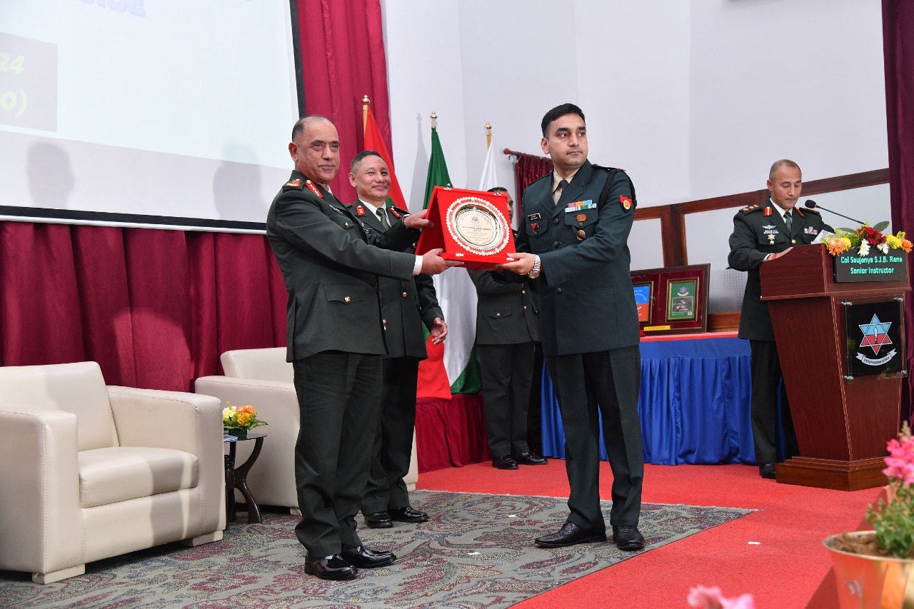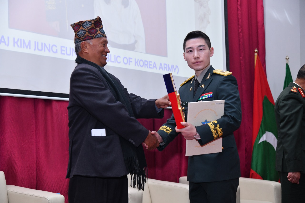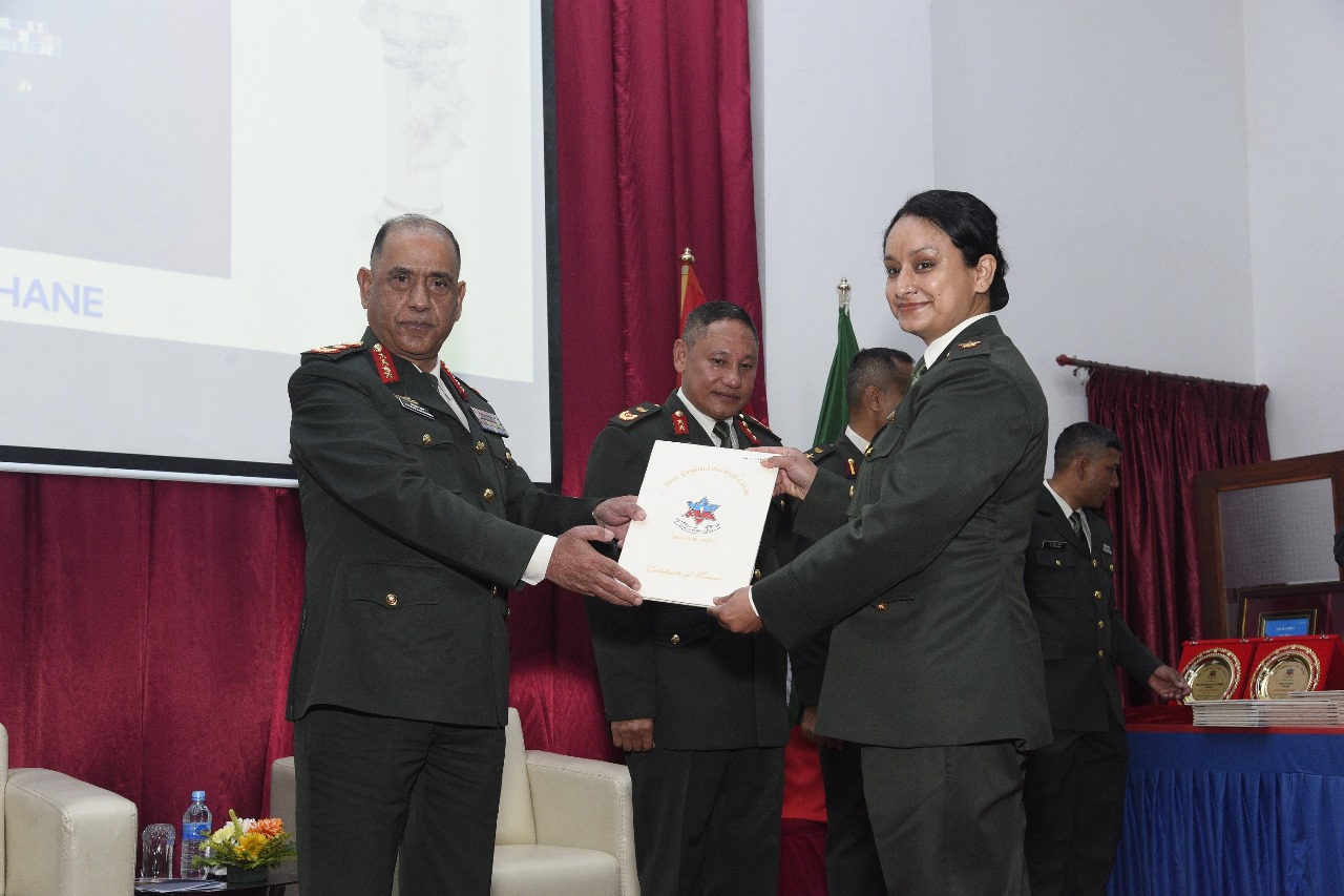 सोमबार समापन भएको तालिमको मास्टर्स इन स्ट्रयाटेजिक स्टडी (एमएसएस) कार्यक्रम विषयको शोधपत्र (थेसिस वर्क) अर्थात् कमाण्डेन्टस पेपरतर्फ सेनानी उज्वल खड्का र केन्याका मेजर ओस्कर मविता ओमाहे संयुक्त रूपमा सर्वोत्कृष्ट भएका छन् ।