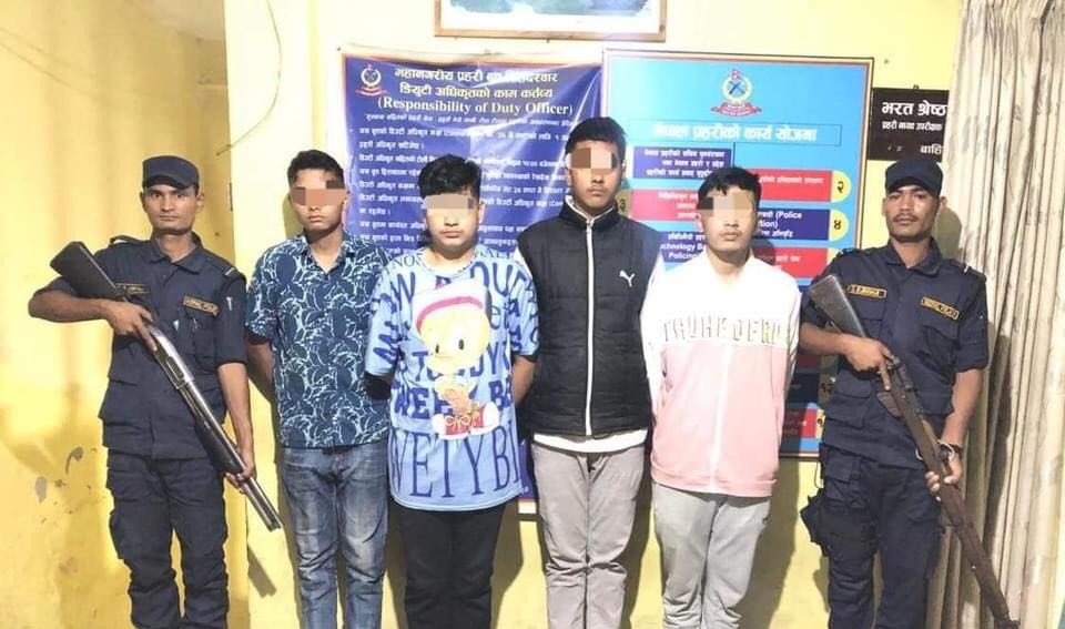 जिल्ला प्रहरी परिसर काठमाण्डुका अनुसार पक्राउ पर्नेमा म्याग्दी बेनी नगरपालिका वीरमुनीका १८ वर्षीय जोसेन बानियाँ, रामेछाप मन्थलीका १८ वर्षीय बिपिन खत्री, ओखलढुङ्गा मानेभञ्याङ्ग- ६ का १८ वर्षीय प्रतिक खतिवडा र काठमाडौं टोखा- ६ ढलमलका १८ वर्षीय सञ्जिब भण्डारी रहेका छन्।