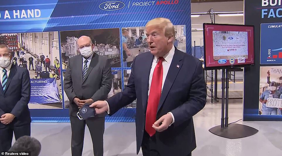 ‘मैले यस पछाडि क्षेत्रमा एउटा लगाएको थिएँ । म प्रेसलाई हेरेर आनन्द दिन चाहन्न,’ उनले राभसनभिल कम्पोनेन्ट प्लान्टको भ्रमणका क्रममा भने, ‘मसँग चस्मा र मास्क थियो ।’