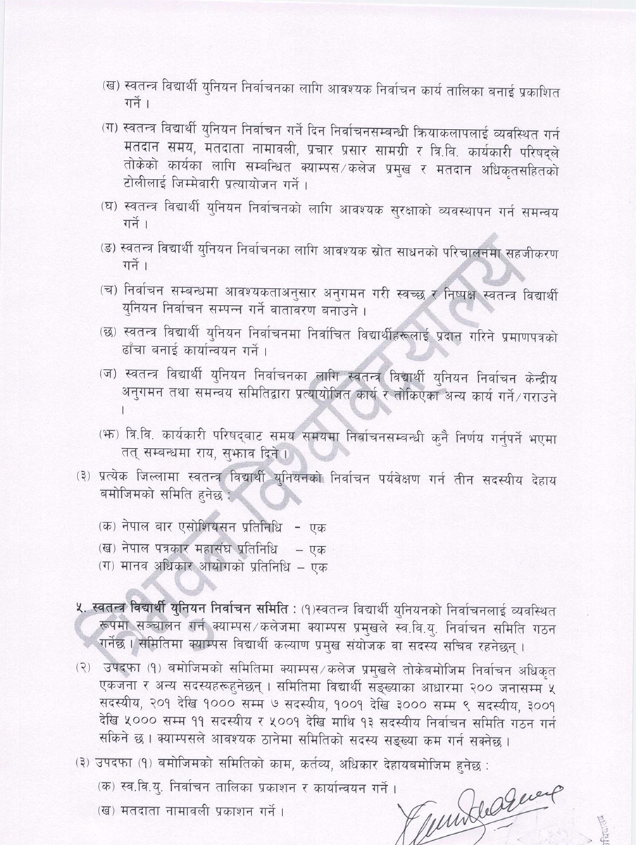 त्रिवि कार्यकारी परिषद्ले जारी गरेको स्वतन्त्र विद्यार्थी युनियन निर्वाचन सम्बन्धी निर्देशिका २०८१ ले २८ वर्षे उमेर हदबारे उल्लेख गरेको छ ।