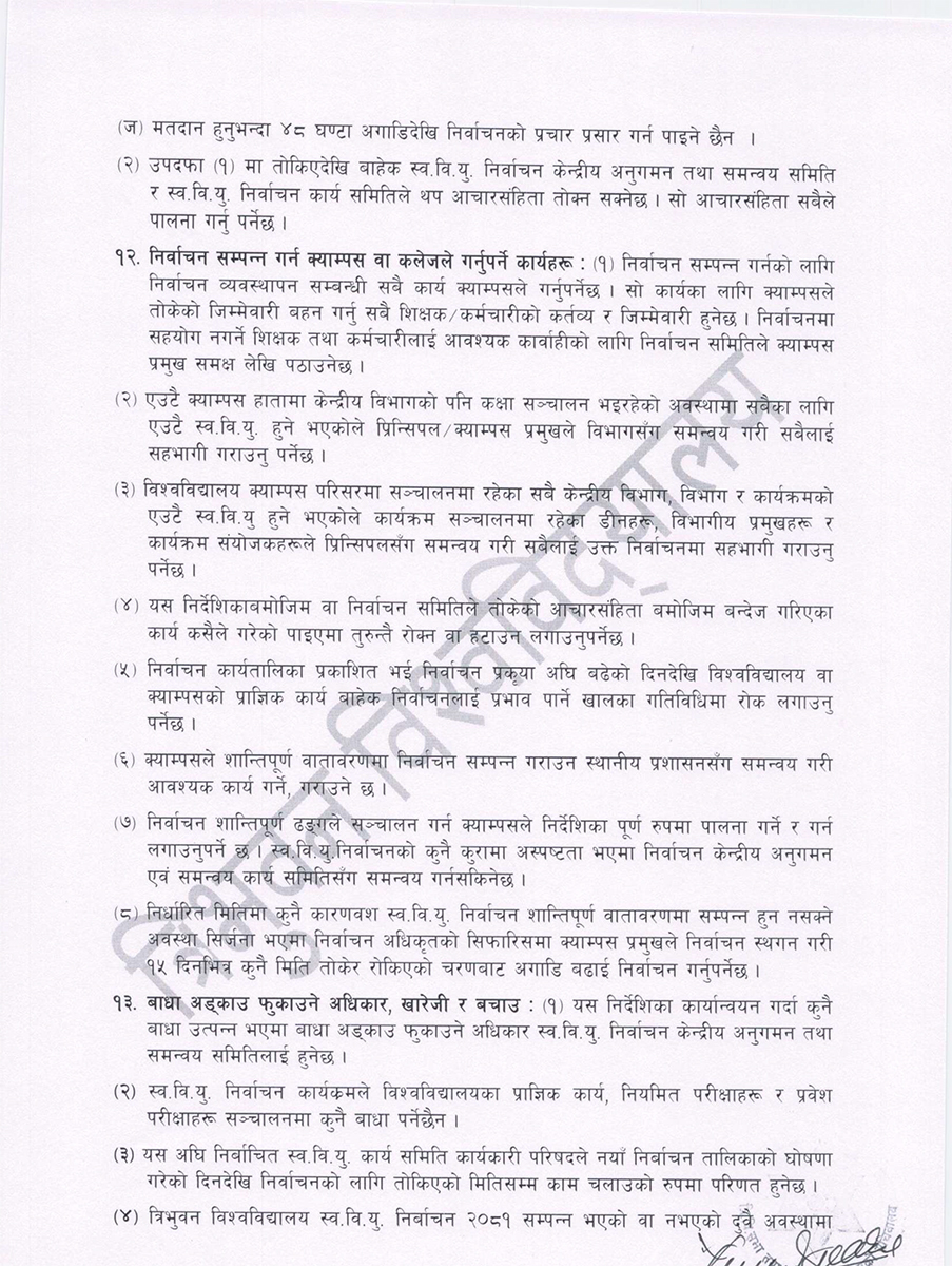 निर्देशिकाले सरकारी निकाय तथा संस्थानमा स्थायी तथा करारमा कार्यरत विद्यार्थी स्ववियु निर्वाचनमा उम्मेदवार हुन रोक लगाएको छ ।