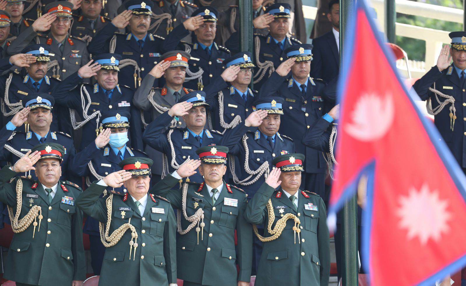 समारोहमा राष्ट्रपति रामचन्द्र पौडेल, उपराष्ट्रपति रामसहायप्रसाद यादव, प्रधानमन्त्री पुष्पकमल दाहाल र राष्ट्रिय सभाका अध्यक्ष गणेशप्रसाद तिमिल्सिनालगायत संवैधानिक निकायका पदाधिकारी उपस्थित थिए। यो अवसरमा सेनाले हेलिकप्टरबाट पुष्पवृष्टिका साथै र सुरक्षाकर्मीले कवाज प्रस्तुत गरेका थिए।