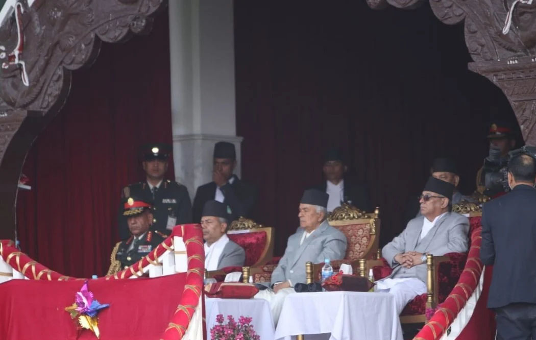 समारोहमा उपराष्ट्रपति रामसहायप्रसाद यादव, प्रधानमन्त्री पुष्पकमल दाहाल, प्रधानन्यायाधीश विश्वम्भर श्रेष्ठ, सभामुख देवराज घिमिरे, राष्ट्रियसभा अध्यक्ष गणेशप्रसाद तिमिल्सिना,मन्त्रिपरिषद् सदस्यहरू, संवैधानिक निकायका प्रमुखहरू,सुरक्षा निकायका प्रमुख, नेपालस्थित कूटनीतिक नियोगका प्रमुख तथा प्रतिनिधि, उच्च सरकारी अधिकृतलगायत सहभागि भएका हुन् ।