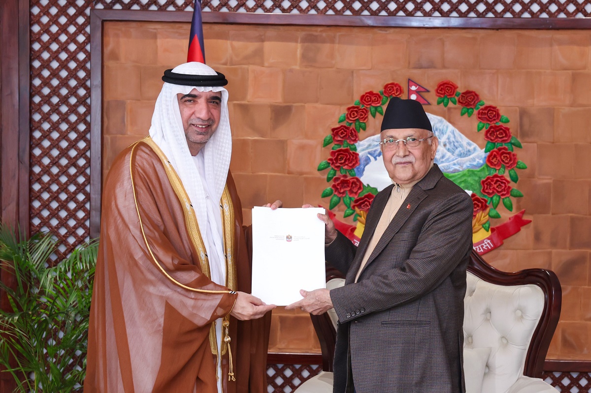काठमाण्डु- प्रधानमन्त्री केपी शर्मा ओलीसँग नेपालका लागि संयुक्त अरब इमिरेट्स (युएइ) का राजदूत अब्दुल्ला अल शम्सीले आज शिष्टाचार भेट गरेका छन् ।