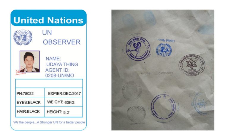 प्रहरीले उनको पसलबाट समाज कल्याण परिषद लैनचौरको लेटर प्याड, संयुक्त राष्ट्रसंघको पर्यवेक्षकको परिचय पत्र, नेपाल फर्मेसी परिषदको छाप, काठमाडौँ जेभियर पब्लिक स्कूलको छाप, सिटिइभीटीको छाप, परीक्षा नियन्त्रणको छाप र ल्यापटप बरामद गरेको छ ।