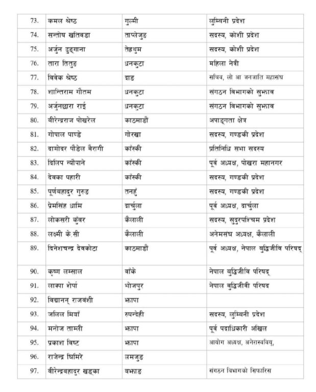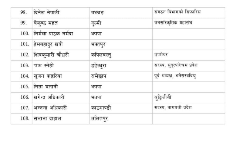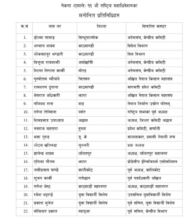 शुक्रबार बसेको पार्टी सचिवालय बैठकबाट मनोनीत प्रतिनिधिको टुंगो लगाइएको एमालेले जनाएको छ ।