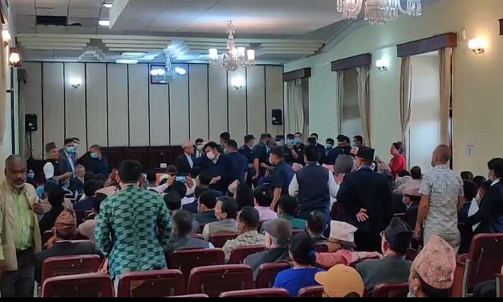 तर, त्यहाँ निर्वाचन आचारसंहिताको विषयलाई लिएर होहल्ला भएपछि हस्ताक्षर गर्ने वातावरण नभएपछि एमालेका प्रतिनिधि आयोग कार्यालयबाट बाहिरिएका थिए । ‘होहल्ला भएपछि हस्ताक्षर गर्ने वातावरण नै भएन । त्यसपछि हामी हस्ताक्षर नगरी बाहिरियौँ,’ एमाले कानुन विभाग प्रमुख रमेश बडालले भने ।
