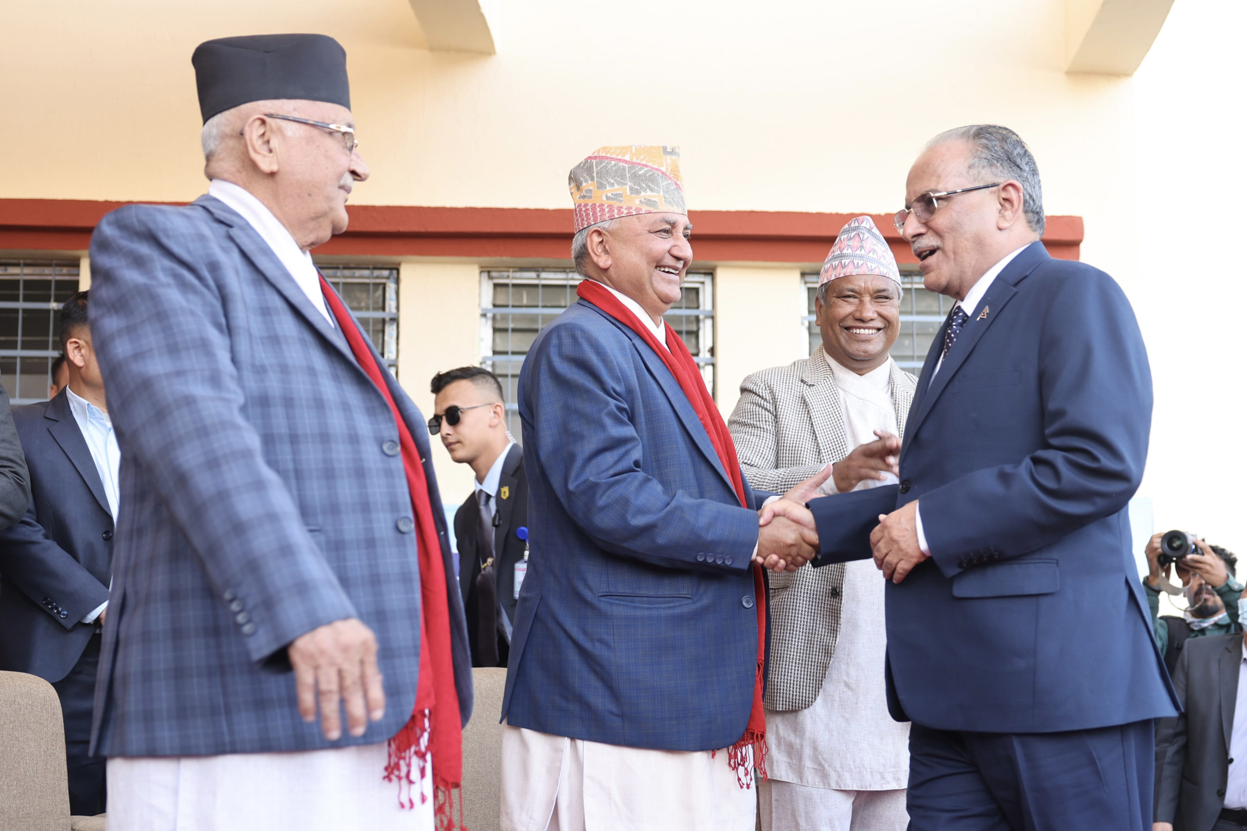 उनीसँगै पूर्वप्रधानमन्त्री तथा कांग्रेस सभापति शेरबहादुर देउवा, पूर्वप्रधानमन्त्री तथा नेकपा एकीकृत समाजवादीका सम्मानित नेता झलनाथ खनाल, पूर्वप्रधानमन्त्री बाबुराम भट्टराई, मन्त्रिपरिषद्का अध्यक्ष खिलराज रेग्मी, नेकपाका महासचिव नेत्रविक्रम चन्द, माओवादीका नेताहरू पम्फा भुसाल, अग्नि सापकोटा, रास्वपाका अध्यक्ष रवि लामिछाने, स्वर्णिम वाग्ले, नेकपा एसकी नेतृ रामकुमारी झाँक्रीलगायत सहभागी भएका छन्। उनीहरूलाई अध्यक्ष केपी ओलीलगायत नेताहरूले स्वागत गरेका थिए।