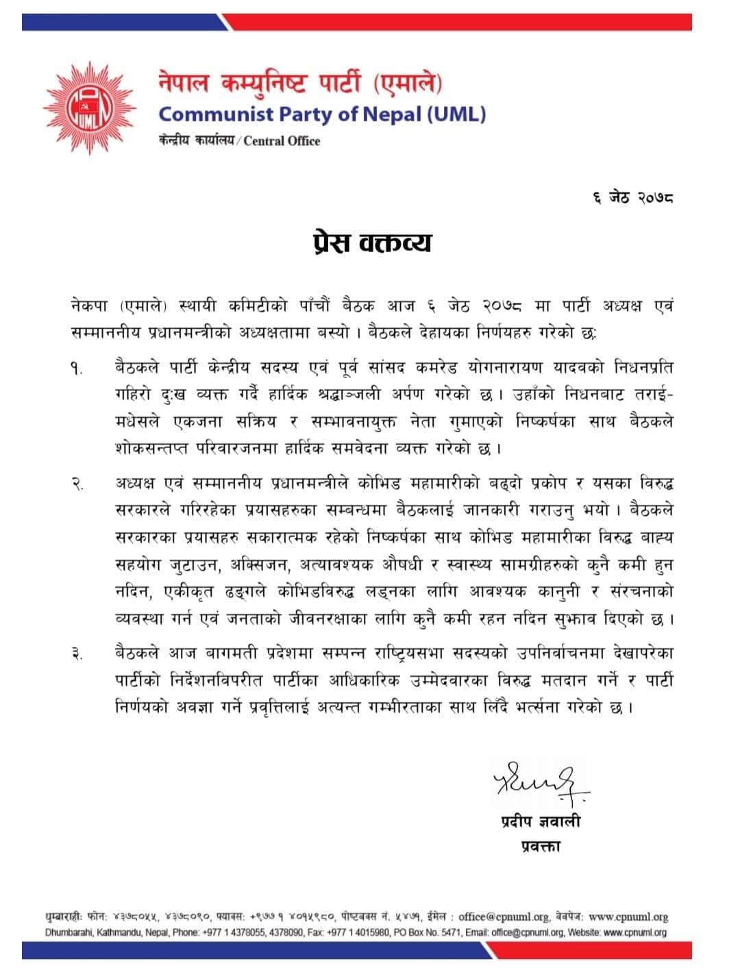यस्ता छन् एमाले स्थायी कमिटी बैठकका निर्णय
