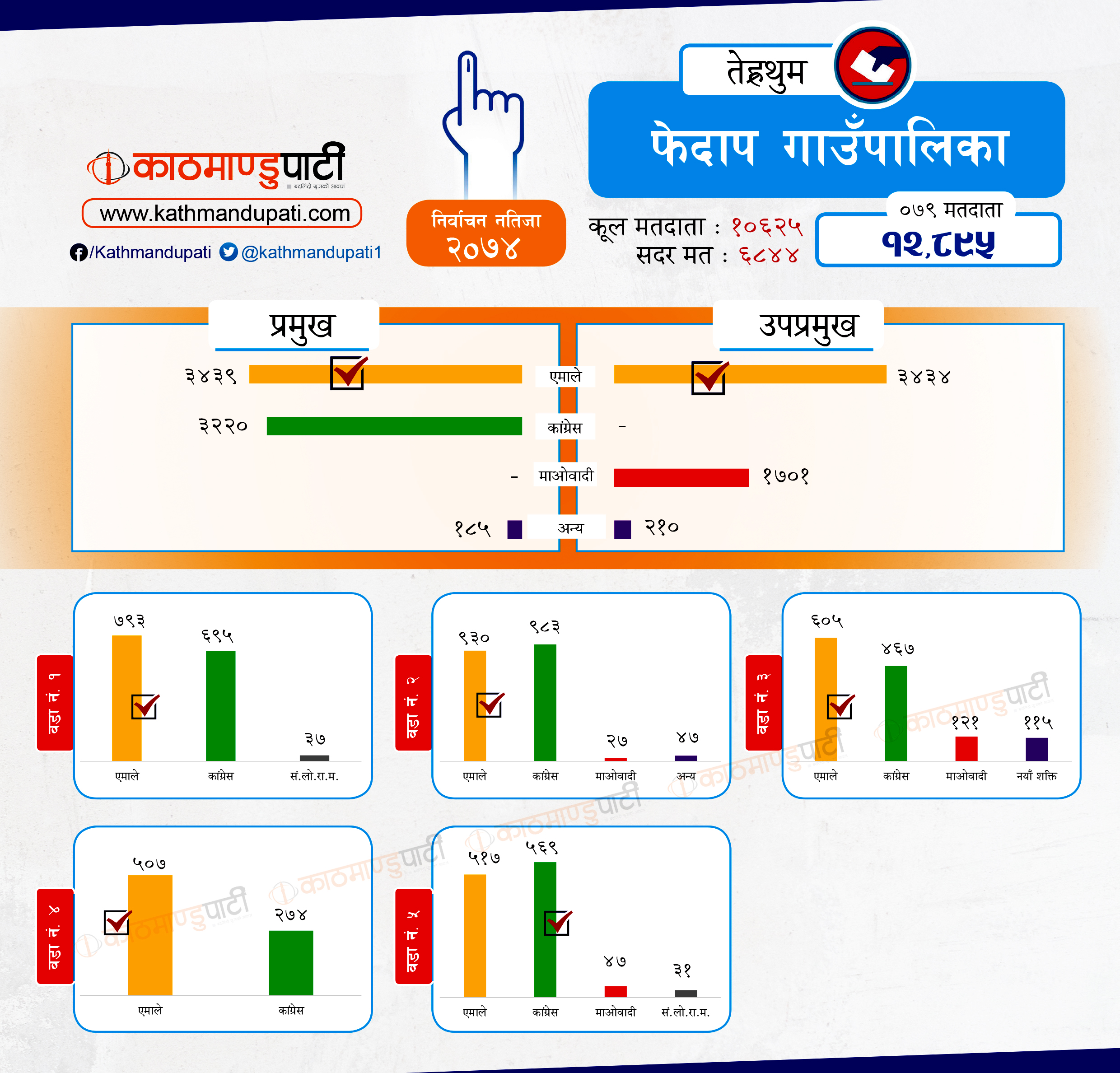 ०७४ सालको स्थानीय चुनावमा एमालेले वर्चस्व स्थापित गरेको थियो । उसले ६ मध्ये चारवटा तहको प्रमुख–उप्रमुख नै जित्यो । त्यसबाहेक थप एउटा प्रमुखमा पनि जित्न सफल भयो । कांग्रेसले एउटा मात्रै पालिकामा प्रमुख–उपप्रमुख जित्यो भने अर्को एकमा उपप्रमुख हात पार्याे। माओवादीले भने मुख्य पदमा जित निकाल्न सकेन । एमालेले म्याङलुङ नगरपालिकाको मेयर–उपमेयरका साथै आठराई, छथर र फेदाप गाउँपालिकामा अध्यक्ष–उपाध्यक्ष दुवै जित्यो ।