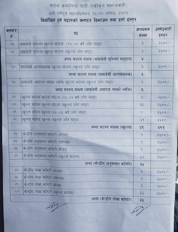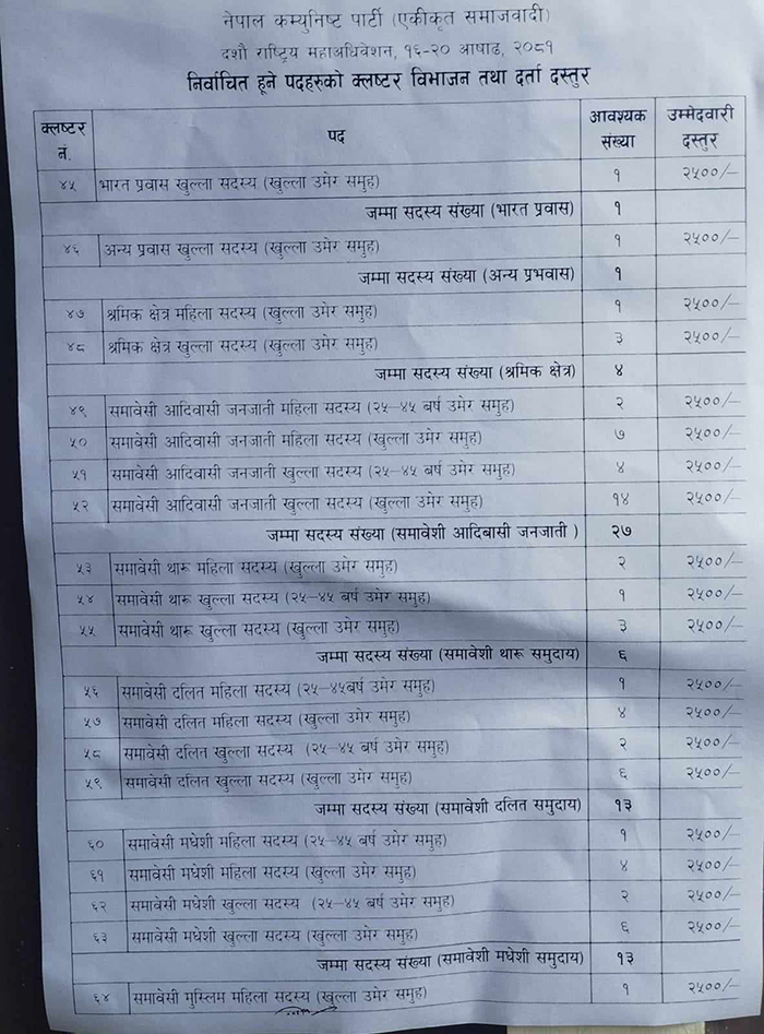 यस्तो छ उमेदवारी दर्ता शुल्कको सूची