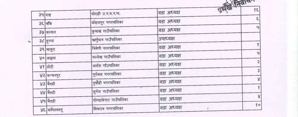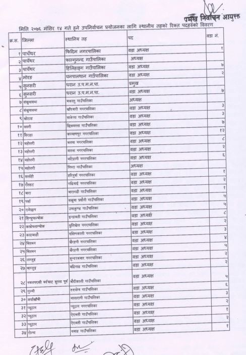 यस्तो छ मंसिर १४ मा उपनिर्वाचन हुन लागेको जनप्रतिनिधिविहीन स्थानीय तहको सूचीः