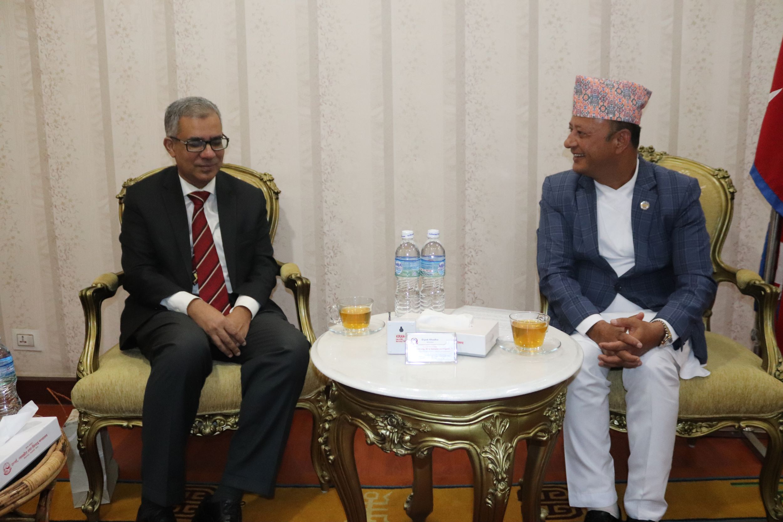 काठमाण्डु– ऊर्जा, जलस्रोत तथा सिँचाइमन्त्री दीपक खड्कासँग नेपालका लागि बङ्गलादेशका राजदूत सलाहुद्धीन नोमन चौधरीले आज शिष्टाचार भेट गरेका छन्।