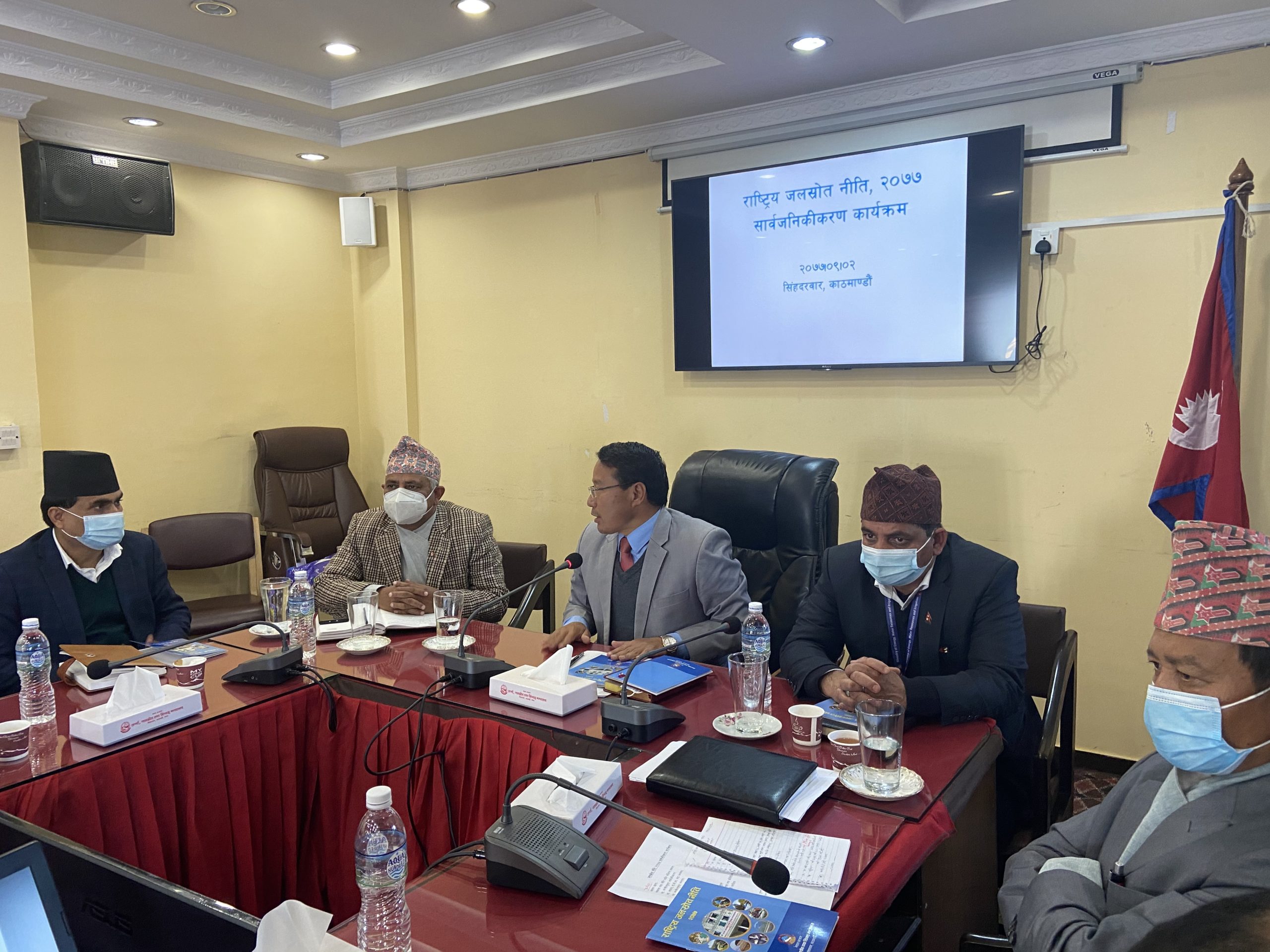 ‘जलश्रोत नीतिले पानीको उपलब्धताअनुसार एकीकृत रुपमादिगो उपयोग र संरक्षण गर्ने मात्रहोइन सुरक्षित रुपले भावी सन्ततिलाई हस्तान्तरण गर्ने सिद्दान्त नीतिले अंगीकार गरेको छ’, मन्त्री पुनले भने ।