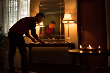 उनले काठमाडौंस्थित आफ्नो निवास फूलमाला सजाएर झकिझकाऊ मात्रै बनाएका छैनन् दीपहरुले पनि उज्यालो बनाएका छन् । राजदूत बेरीले आफ्नो निवास भित्रको कोठामा पालकमा बत्ती बालेर सबैलाई शुभकामना दिएका छन् ।