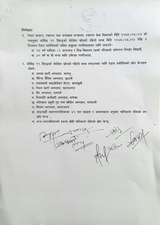 काठमाण्डुमा रहेका १८ वर्षमाथिका प्लस टु अध्ययनरत र विश्व विद्यालय तहको परीक्षाको प्रवेश पत्र लिएका विद्यार्थीहरुलाई भेरोसेलको पहिलो मात्रा खोप दिइन लागिएको हो ।