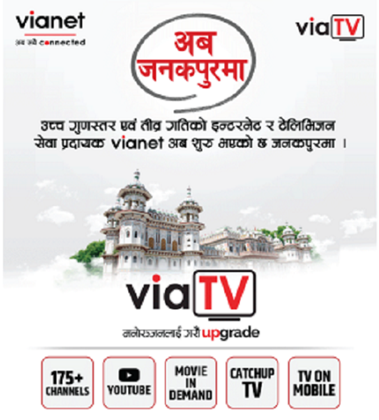 जनकपुर – नेपालभरि व्यावसायिक र व्यक्तिगत प्रयोजनका लागि उच्च गतिको इन्टरनेट कनेक्टिभिटी र टेलिभिजन सेवा प्र्रदायक भायानेट कम्युनिकेसन्स प्रालिले आफ्नो सेवा विस्तार गर्ने क्रममा अब जनकपुर र बर्दिवासमा एकसाथ सेवा सुचारु गरेको छ । यो सेवा विस्तारसँगैं कम्पनी अब देशका २४ शहरहरुमा गुणस्तरीय इन्टरनेट र टेलिभिजन सेवा प्रवाह गर्न सक्षम भएको छ ।
