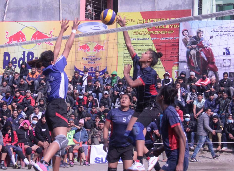नयाँ बसपार्कस्थित ढोरपाटन क्लबको खेल मैदानमा भएको खेलमा साबिक बिजेता एपीएपले दोहोरो जित निकाल्दै ३ खेलबाट ९ अंक बनाएको छ । पहिलो खेलमा एपीएफले सेबलाई २५–८,२५–१४ र २५–१८ को सोझो सेटमा हराउदा दोश्रो खेलमा थाहा नगरपालिकलाई २५–७, २५–११ र २५–१२ को सोझो सेटमा पराजित ग¥यो । अर्को खेलमा पुलिसले श्रीगाँउ खेलकुद विकास समिति दाङलाई २५–८,२५–९ र २५–८ को सोझो सेटमा हराउदै २ खेलबाट ६ अंक जोडेको छ ।