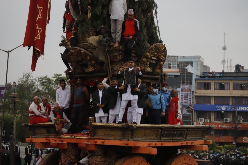 राष्ट्रपति विद्यादेवी भण्डारीको उपस्थितिमा भोटो देखाइएको छ । किम्वदन्तीअनुसार नागराजकी पत्नीको आँखा दुखेपछि स्थानीय कृषकले तन्त्रमन्त्रले निको पारेपछि नागराजले ती कृषकलाई उपहारस्वरुप भोटो दिएका थिए। खेतमा काम गर्ने क्रममा भोटो हराएपछि व्यापक खोजी भएको तर कतै नपाएपछि जावलाखेलमा भएको रातो मच्छिन्द्रनाथको रथजात्रामा एक राक्षसले लगाएको भेटियो।