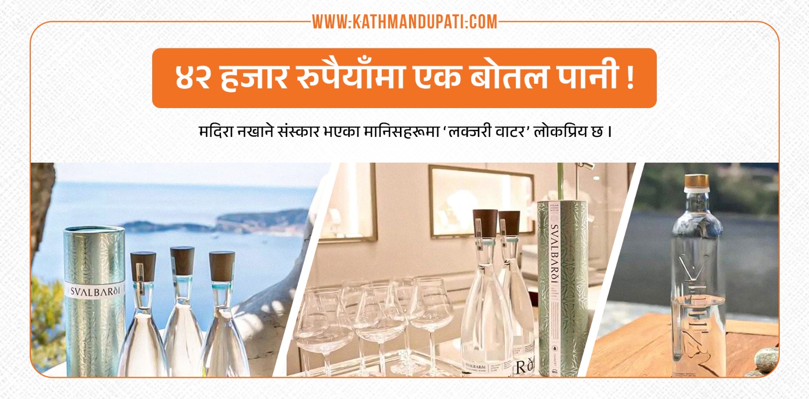 काठमाण्डु – तपाइँलाई कुनै यस्तो रेष्टुराँ थाहा छ जसमा राखिएको खानेकुराको सूचीमा राम्रो वाइनको सट्टा ‘लक्जरी’ पानी हुन्छ ? अथवा नवविवाहित जोडीलाई स्याम्पेन वा जुसको सट्टा फेन्सी पानी पिउन दिइन्छ ?