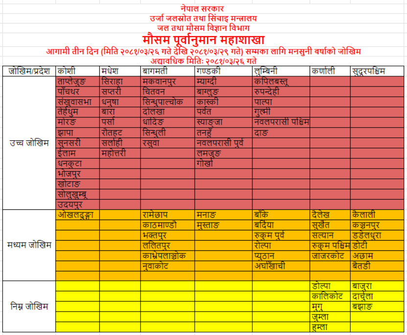 जिल्लागत मनसुनी वर्षाको जोखिमको विवरण –