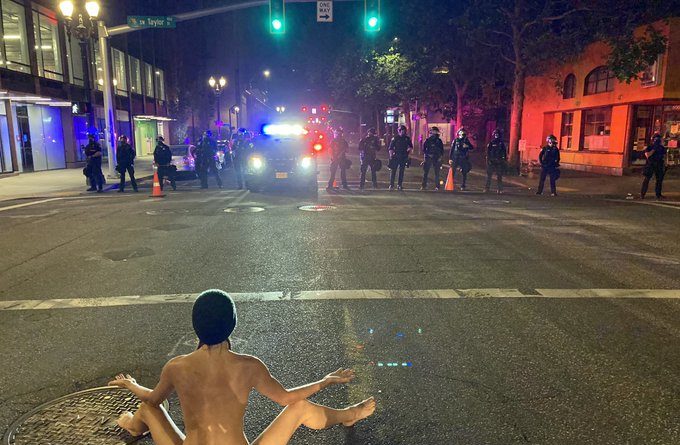 एजेन्सी – सामाजिक सञ्जालमा अहिले एक युवतीको तस्वीर भाइरल भइरहेको छ । यो अमेरिकाको पश्चिम तटीय सहर पोर्टल्यान्डमा शनिबार राति करिव १ः४५ बजे भएको प्रदर्शनको क्रममा खिचिएको दृश्य हो ।