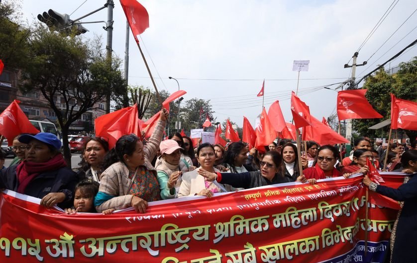 काठमाण्डु- ११५ औँ अन्तर्राष्ट्रिय श्रमिक महिला दिवसको अवसरमा शनिाबर महिला मोर्चाले र्याली निकालेको छ ।