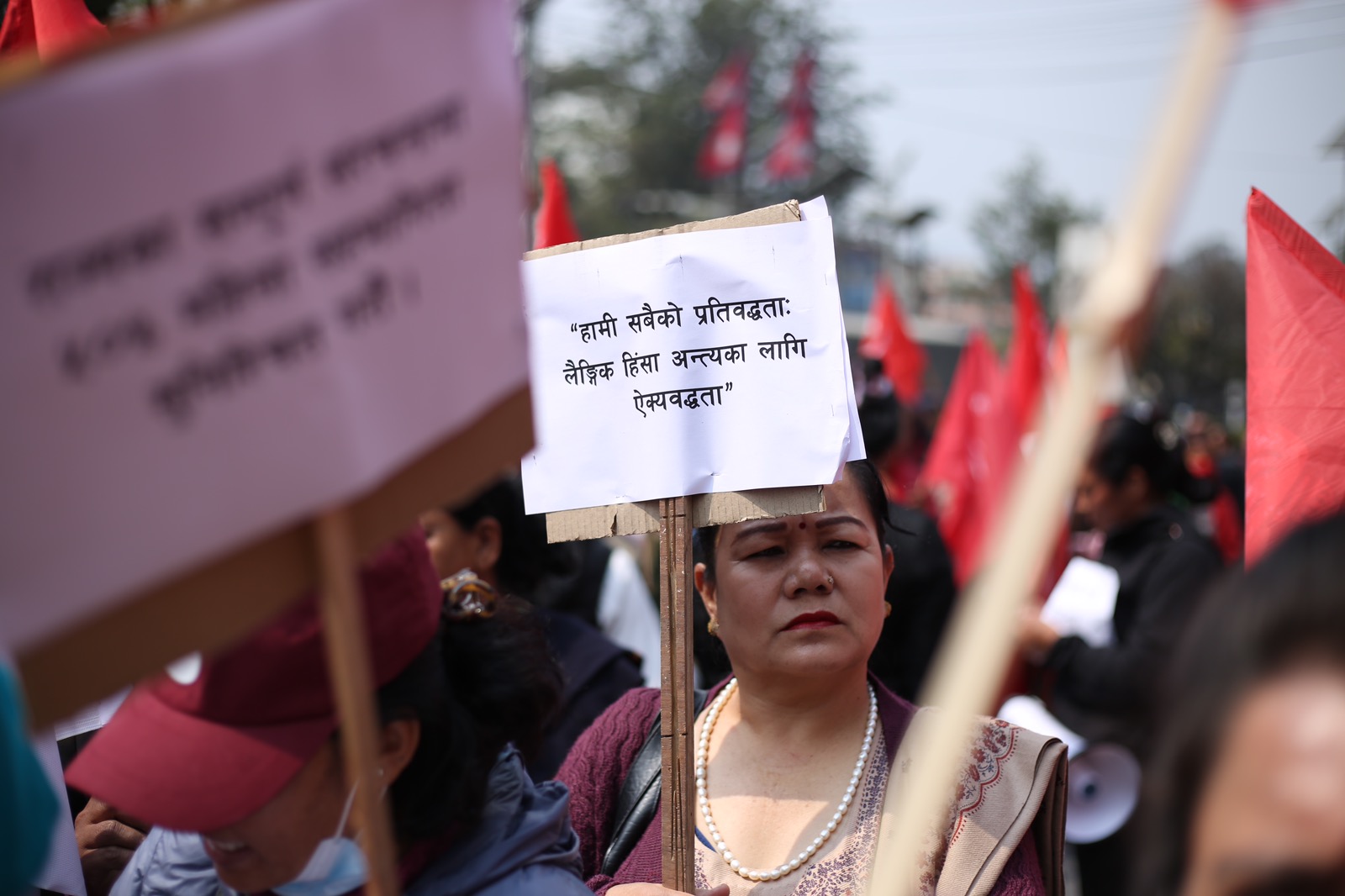 राजधानीको माइतीघरबाट निस्किएको र्याली बानेश्वरसम्म पुगेको थियो । र्यालीमा सहभागीहरूले महिला अधिकारका पक्षमा नारा लगाएका थिए ।