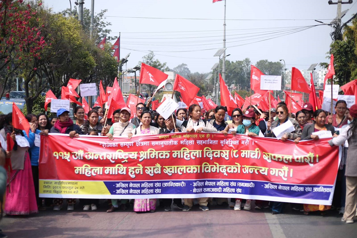 काठमाण्डु- ११५ औँ अन्तर्राष्ट्रिय श्रमिक महिला दिवसको अवसरमा शनिाबर महिला मोर्चाले र्याली निकालेको छ ।