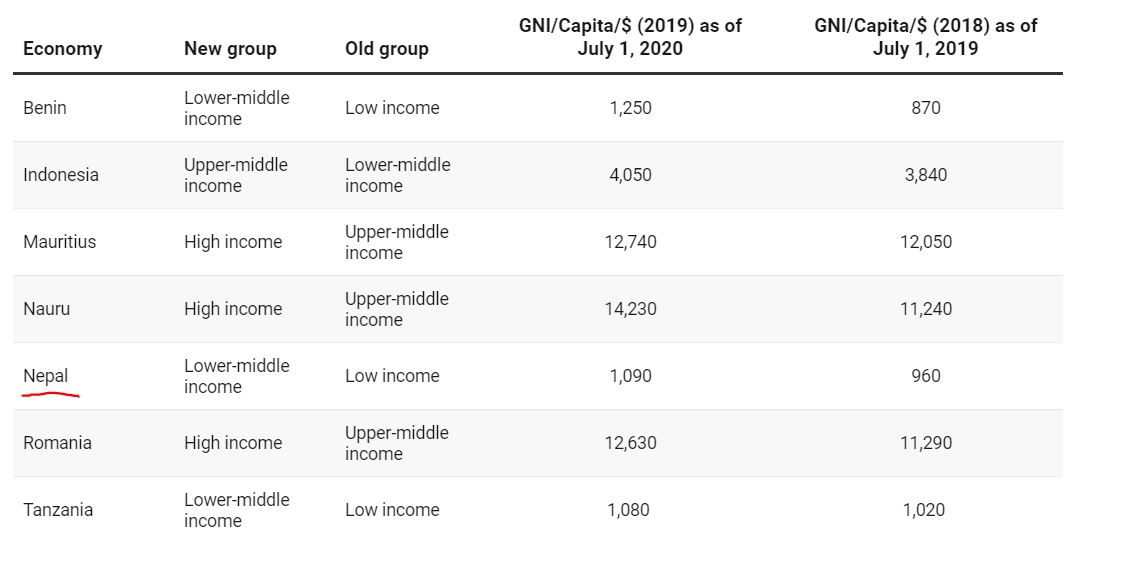 नेपाल निम्न मध्यम आय भएको मुलुकको सूचीमा उक्लियो