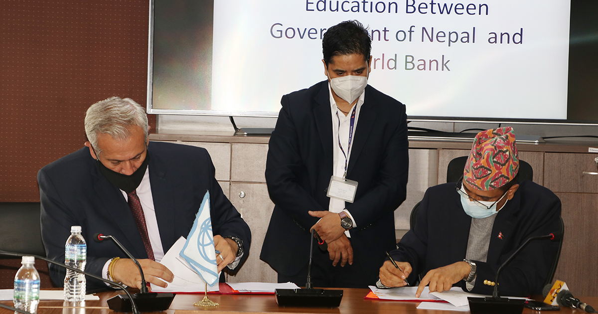 विहीवार अर्थमन्त्रालयमा आयोजित समारोहमा नेपाल सरकारको तर्फबाट अर्थ सचिव मधुकुमार मरासिनी र विश्व बैंकको तर्फबाट नेपालसहित माल्दिभ्स र श्रीलंकाका लागि कन्ट्री डाइरेक्टर फारिस हदाद–जेर्भोसले सम्झौतापत्रमा हस्ताक्षर गरेका हुन् ।