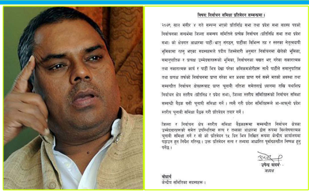 तर, यादवलाई राउतले फराकिलो मतान्तरले हराए । अध्यक्ष यादवले प्रदेश समिति, राष्ट्रिय समिति र जिल्ला समन्वय समितिहरुलाई पत्र लेखेर जिल्ला र निर्वाचन क्षेत्रस्तरीय समीक्षा बैठक राख्न भनेका छन् । पछिल्लो समय यादव निर्वाचनमा हार्नुको कारण खोजिरहेका छन् ।