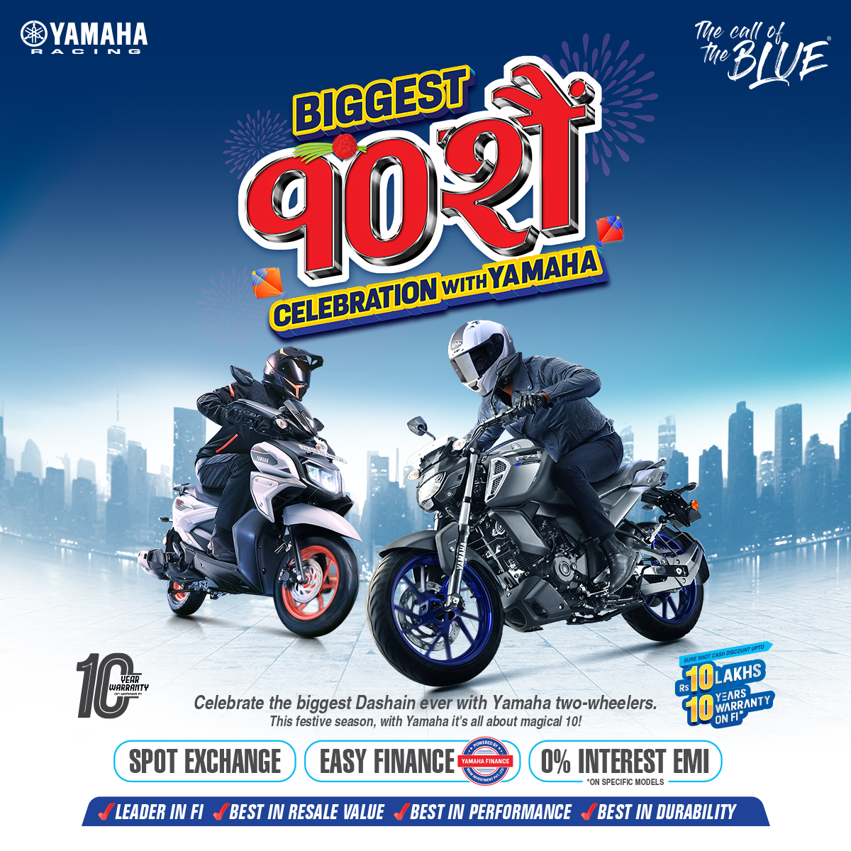 एफआई प्रविधि, रिसेलभ्यालु र पर्फर्मेन्समा उत्कृष्ट अनि दिगोपनामा सर्वोत्कृष्ट यामाहा बाइक र स्कुटरहरूसँगै यसपालिको दशैं साँच्चै नैबिगेस्ट दशैं हुने अपेक्षा गरिएको छ।