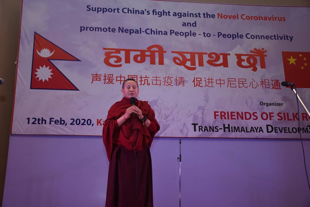 ट्रान्स हिमालय विकास केन्द्र र फ्रेण्ड्स अफ सिल्क रोडले आयोजना गरेको कार्यक्रममा नेपाल र चीनको झण्डा बनाइ मैनबत्ती बालेर ‘हामी साथमा छौँ’ भन्ने सन्देश दिइएको थियो । त्यस्तै ‘सांगीतिक र साहित्यिक माध्यमबाट चीनलाई साथमा छौँ’ भन्ने सन्देश दिइएको छ ।