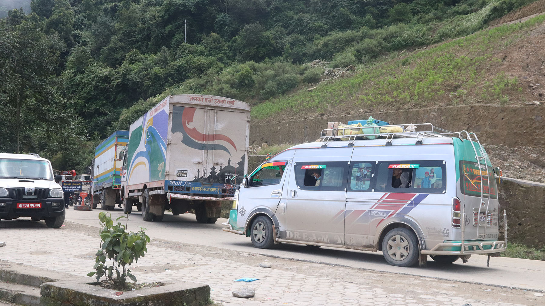 राजमार्गमा सुस्त गतिमा मात्रै सवारी साधन चल्नसक्ने अवस्थामा यातायातको चाप अत्यधिक हुँदा र चालकको ‘ओभरटेक’ गर्ने पुरानै नराम्रो बानीले सडक खुले पनि जामको समस्या कायमै छ । यद्यपि बिचबिचमा पुनः पहिरो खस्ने क्रम जारी तथा ठाउँठाउँमा एकतर्फी सडकले जाम थपिएको छ ।