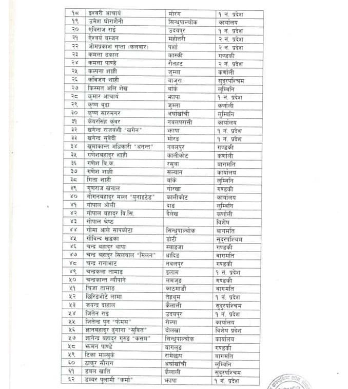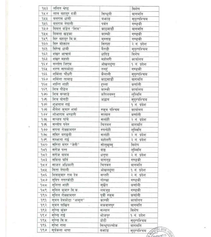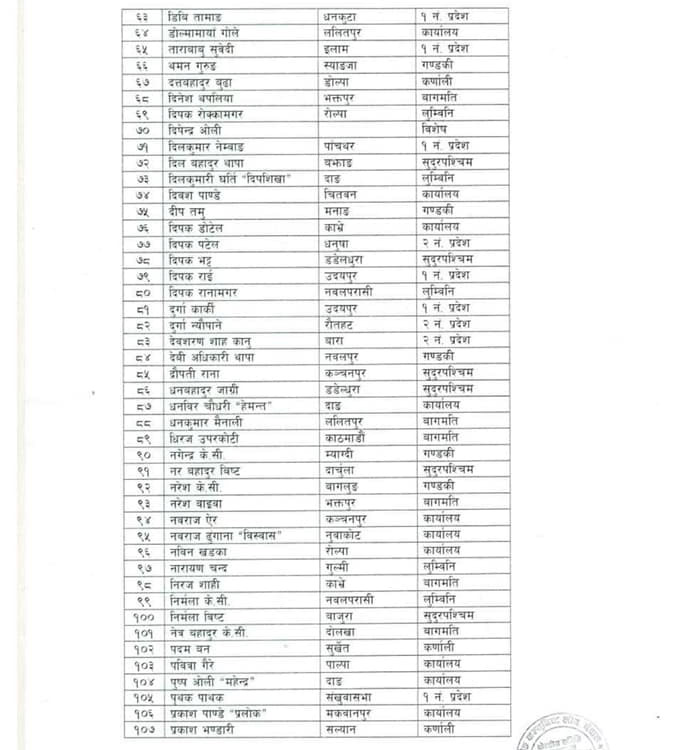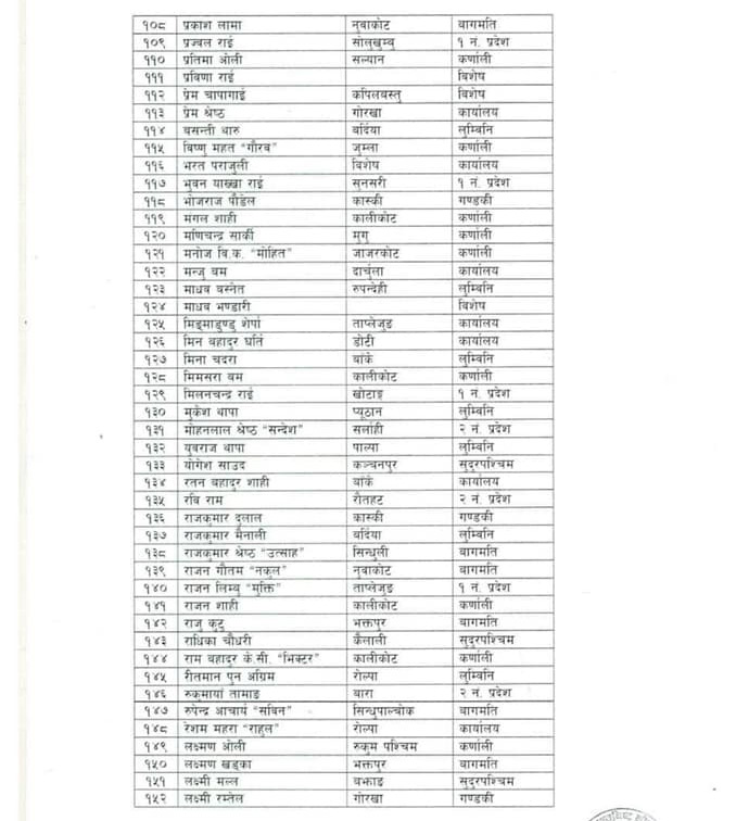 काठमाण्डु – नेकपा माओवादी केन्द्र निकट युवा संघगठन वाईसीएलले पदाधिकारी र केन्द्रीय सदस्यहरुको जिम्मेवारी तोकेको छ । वाईसीएलले राष्ट्रिय सम्मेलनबाट गत भदौमा निर्वाचित भएका सुमन देवकोटा नेतृत्वको पदाधिकारी र सदस्यहरुको जिम्मेवारी झण्डै तीन महिनापछि तोकेको हो ।