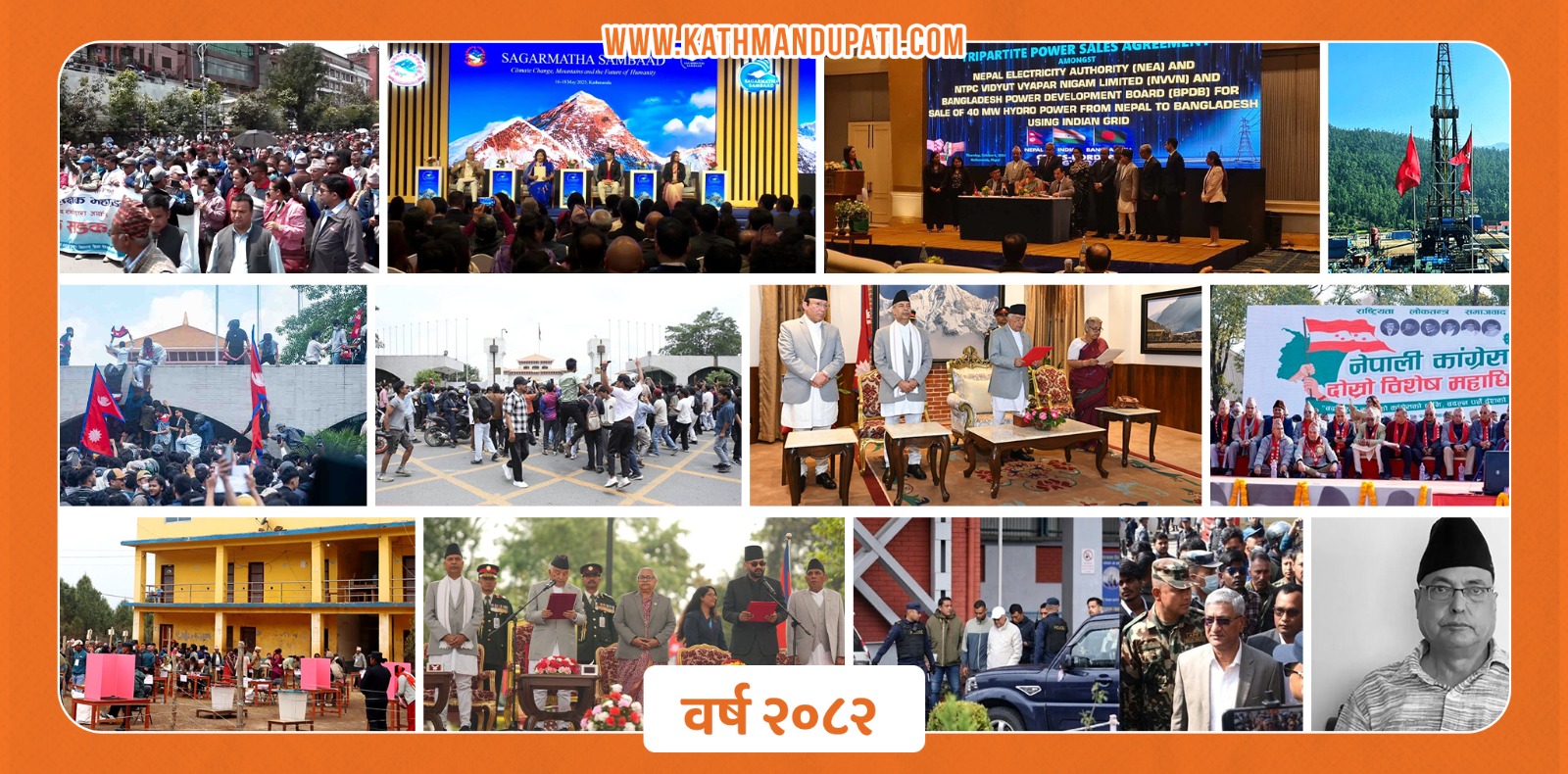 काठमाण्डु – राजनीतिक दृष्टिले वर्ष २०८२ मा धेरै उतारचढाब रह्यो । यहि वर्ष जेन जी आन्दोलन भयो भने वर्षको अन्त्यतिर नयाँ निर्वाचन भयो । २०८२मा भएको राजनीति, आर्थिक र सामाजिक क्षेत्रमा भएका मुख्य घटना यस प्रकार छ ।
