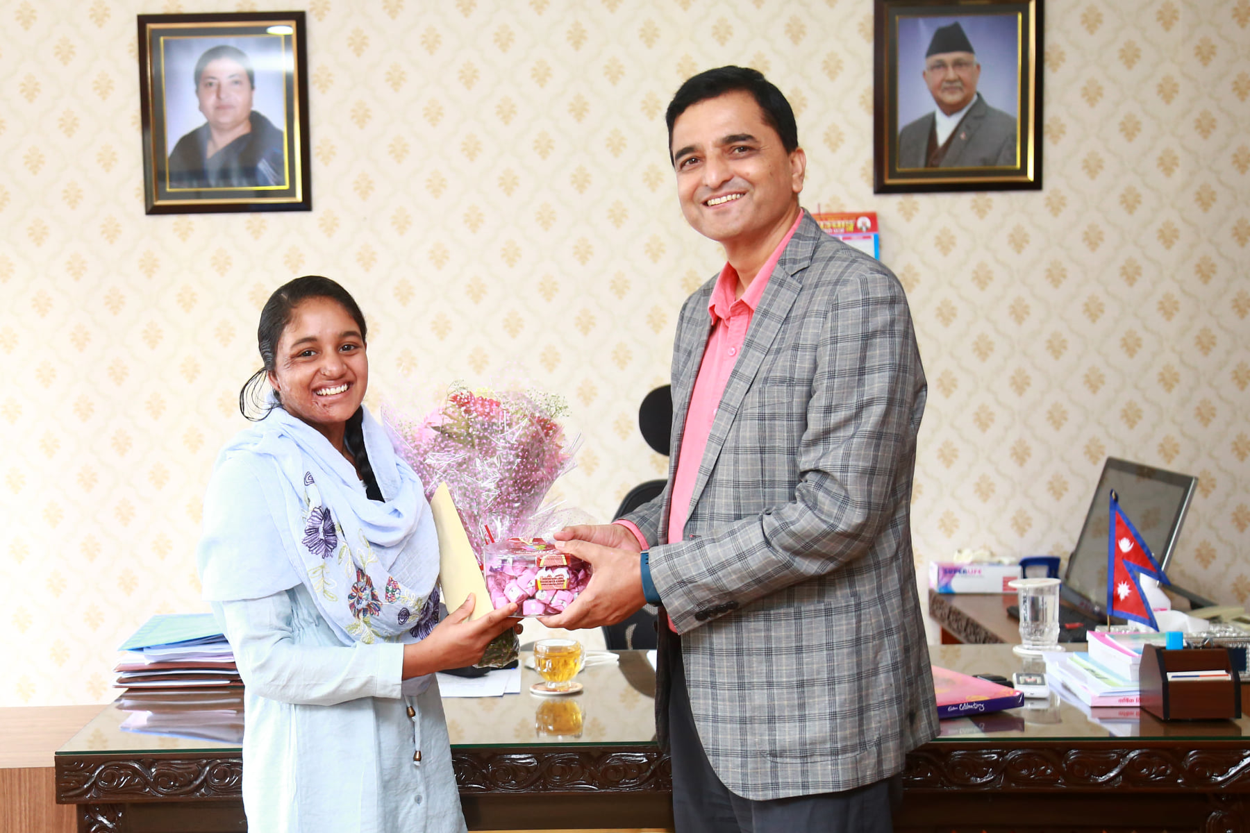 जन्मदिनमा मुस्कान खातुनलाई पर्यटनमन्त्रीको ५० हजार सहयोग