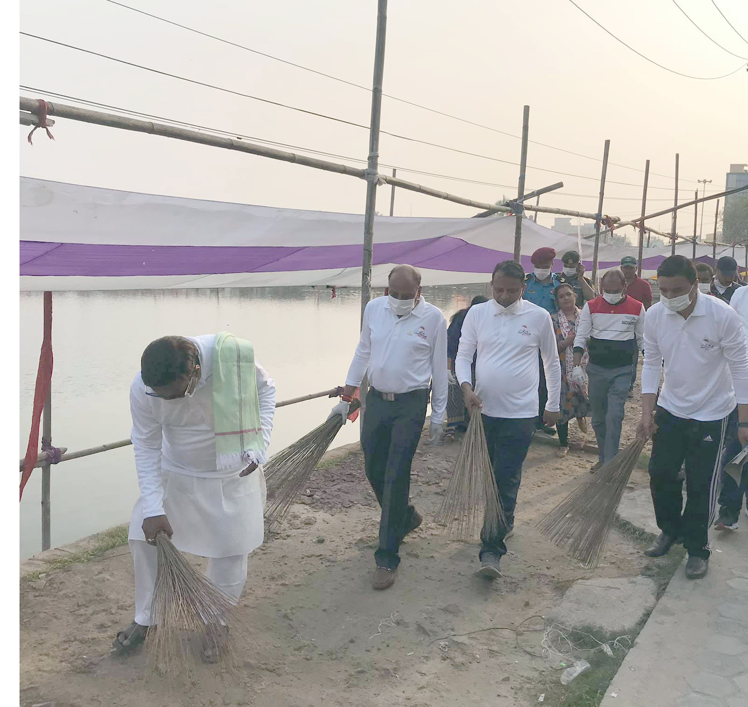जनकपुरधाम – छठ पर्व र नेपाल भ्रमण वर्ष २०२० प्रवर्द्धनका लागि आज (बिहीबार) बिहान संस्कृति, पर्यटन तथा नागरिक उड्डयनमन्त्री योगेश भट्टराई र प्रदेश नं २ का मुख्यमन्त्री लालबाबु राउतको अगुवाइमा जनकपुरका मठमन्दिर र तालतलैयामा सरसफाइ अभियान सुरु भएको छ । छठ आज सुरु हुँदै छ ।