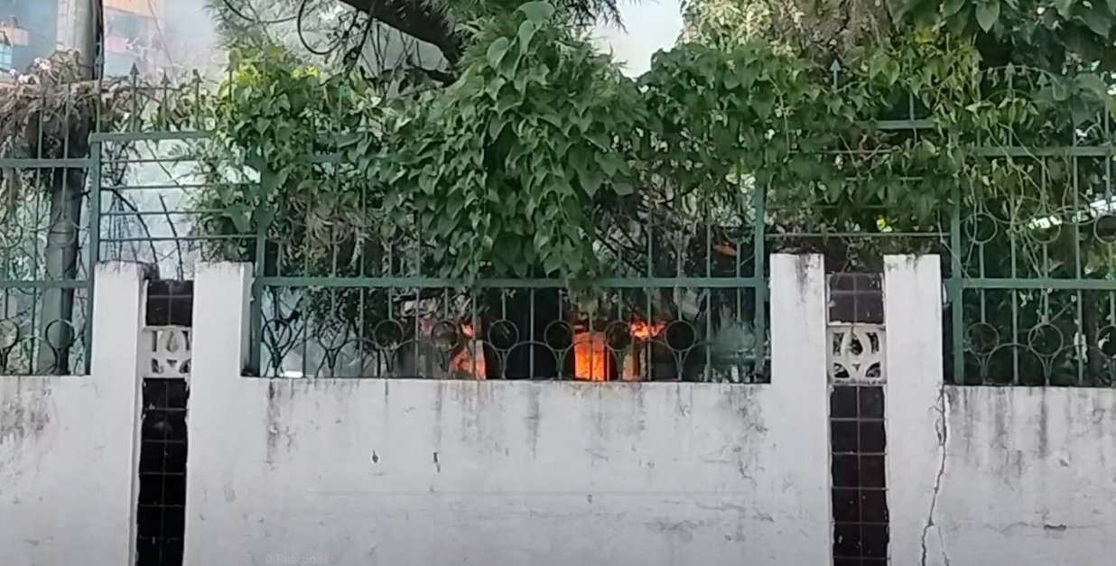 प्रदर्शनकारीले संघीय संसद् भवनको मुल गेट (पश्चिम गेट) भित्रै आगो लगाएका छन्।