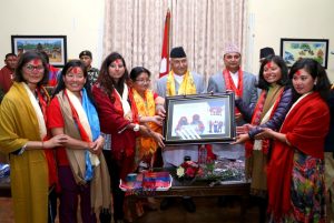 काठमाडौँ – प्रधानमन्त्री केपी शर्मा ओलीले सगरमाथा आरोही महिला पत्रकारलाई सम्मान गरेका हुन् । प्रधानमन्त्री