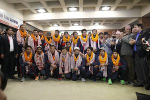 काठमाडाैं–विश्वकप क्रिकेट छनोट प्रतियोगिताबाट एक दिवसीय मान्यता पाएको नेपाली क्रिकेट टोली सोमबार स्वदेश फिर्ता भएको