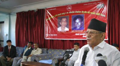 विराटनगर– नेपाल कम्युनिष्ट पार्टी (माओवादी केन्द्र)का अध्यक्ष एवं पूर्वप्रधानमन्त्री पुष्पकमल दाहाल ‘प्रचण्ड’ले संविधान संशोधनको विपक्षमा आफूहरू नरहेको बताएका छन् । विराटनगर विमानस्थलमा आज बिहान पत्रकारसँगको भेटघाटमा उनले संविधान संशोधनका नाममा जनताको हकअधिकार र प्राप्त उलब्धिलाई मास्ने काम माओवादी पार्टीलाई सह्य नहुने धारणा व्यक्त गरे। उत्पीडित वर्ग र समुदायका उत्थानका लागि ल्याइएको समानुपातिक एवं समावेशी व्यवस्था…
