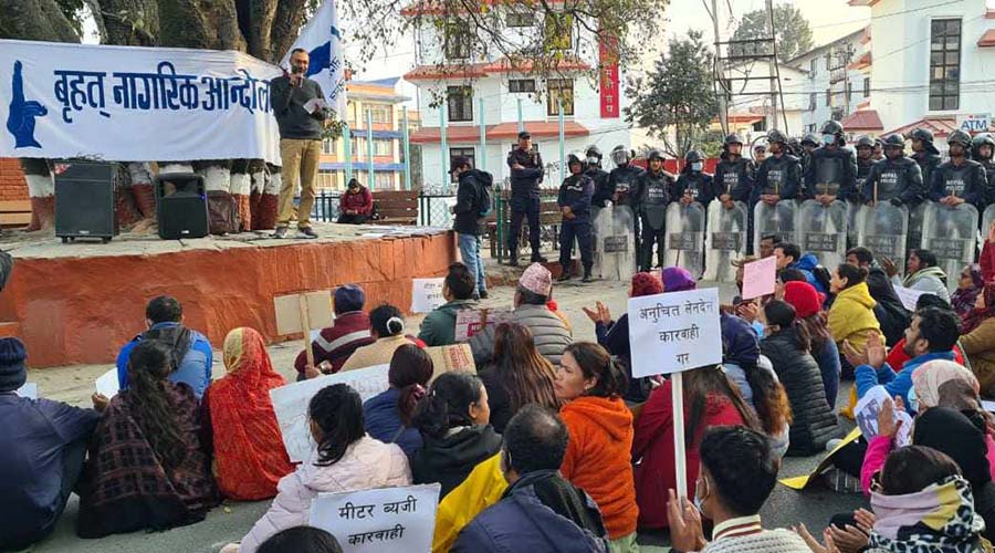 काठमाण्डु – सरकारले निषेधाज्ञा लगाएको माइतीघर मण्डलातिर जान खोज्ने बृहत् नागरिक आन्दोलनका प्रदर्शनकारीलाई प्रहरीले पक्राउ गरेको छ । प्रदर्शनकारीले मिटर ब्याज पीडितलाई न्याय दिनुपर्ने, अनुचित लेनदेनमा संलग्नलाई कारबाही गर्नुपर्ने, मिटर ब्याजीलाई कारबाही गर्नुपर्ने लगायत माग राखेका थिए । नागरिक आन्दोलनका सन्जीव उप्रेती, वसन्त चिप्पा, प्रनेता, अभय श्रेष्ठ, आरती साहको परिवार, निर्ग नवीन, गोविन्द छन्त्याल लगायतलाई…