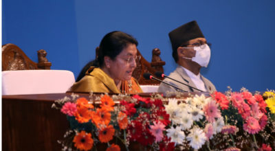 काठमाडौं – राष्ट्रपति विद्यादेवी भण्डारीले यस वर्षको नीति तथा कार्यक्रममा ‘यो सरकार’ भन्दै सम्बोधन गरेकी