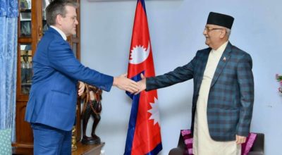 काठमाण्डु- नेकपा (एमाले)का अध्यक्ष केपी शर्मा ओली र नवनियुक्त अमेरिकी राजदूत डीनए थम्पसनबीच भेटवार्ता भएको