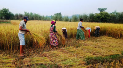 बर्दिया – बर्दियाको बबई र कर्णाली नदीमा आएको बाढीले क्षति पु-याएको धान भित्र्याउन राजापुर नगरपालिका–२