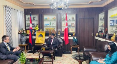 काठमाण्डु – माओवादी केन्द्रका अध्यक्ष तथा पूर्वप्रधानमन्त्री पुष्पकमल दाहालसँग नेपालका लागि अमेरिकी नवनियुक्त राजदूत डिन