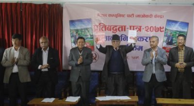 काठमाण्डु – नेकपा एमालेले मंगलबार चुनावी घोषणापत्र सार्वजनिक गर्दै छ । आगामी ४ मंसिरमा हुने